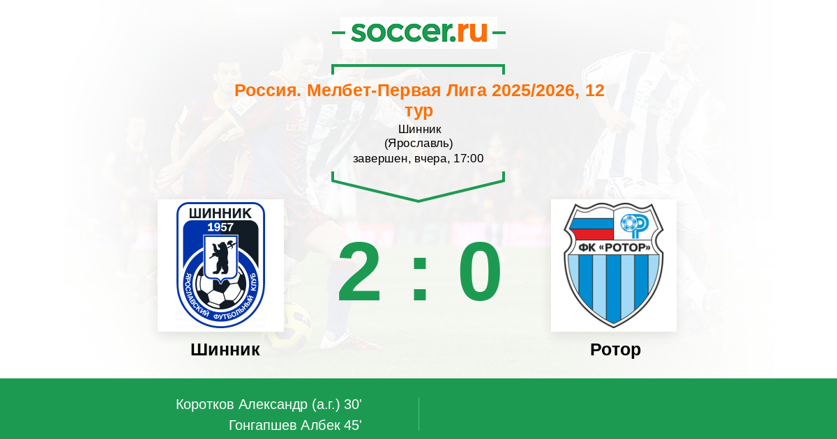 Протокол матча Шинник против Ротор