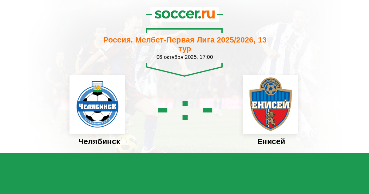 В предстоящем матче 13 - го тура Первой Лиги России между командами Челябинск и Енисей , моим фаворитом на победу является команда хозяев Челябинск , так как они играют дома