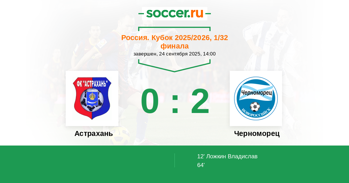 Протокол матча Астрахань против Черноморец