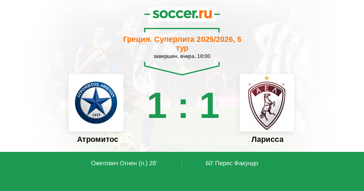 Протокол матча Атромитос против Ларисса