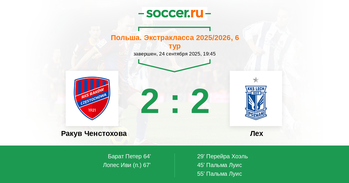 Протокол матча Ракув Ченстохова против Лех
