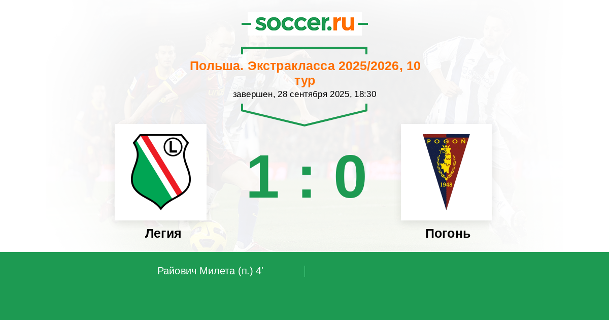 Протокол матча Легия против Погонь