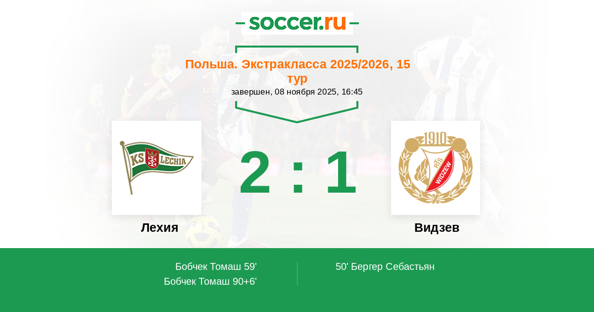 Протокол матча Лехия против Видзев