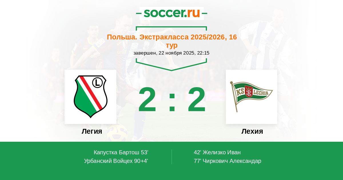 Протокол матча Легия против Лехия