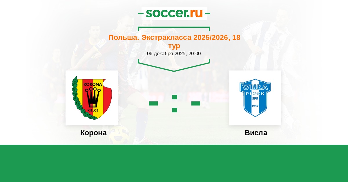 Польша. Экстракласса 13.10.2017 Корона Логотип футбольный клуб Корона (Кельце) 2:0 Логотип футбольный клуб Висла (Плоцк) Висла