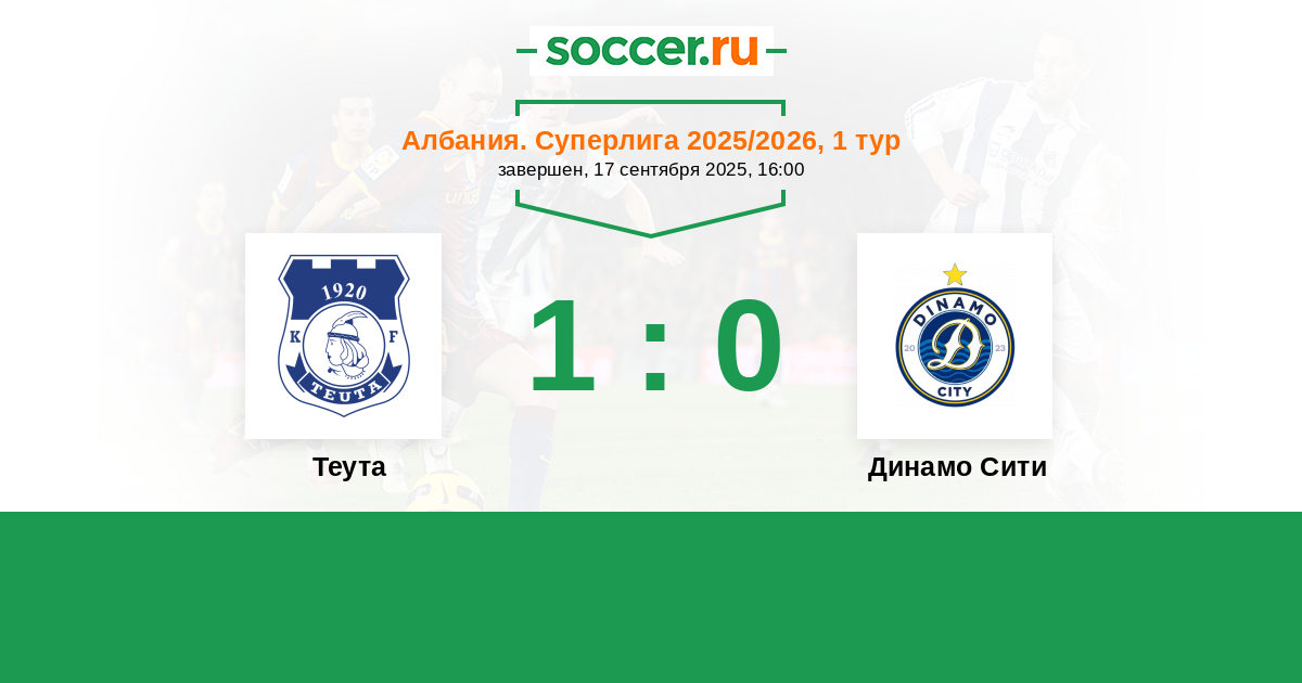 Протокол матча Теута против Динамо Сити