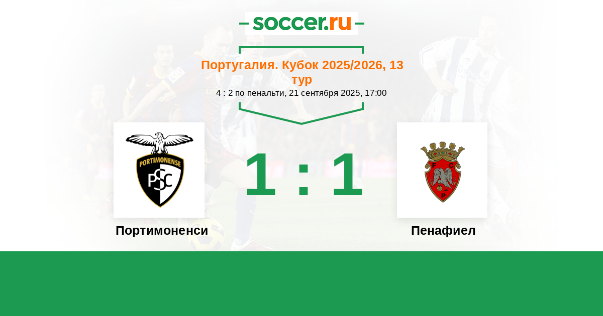 Португалия. Кубок 19.11.2021 Пенафиел Логотип футбольный клуб Пенафиел 0:3 Логотип футбольный клуб Портимоненси (Портиман) Портимоненси
