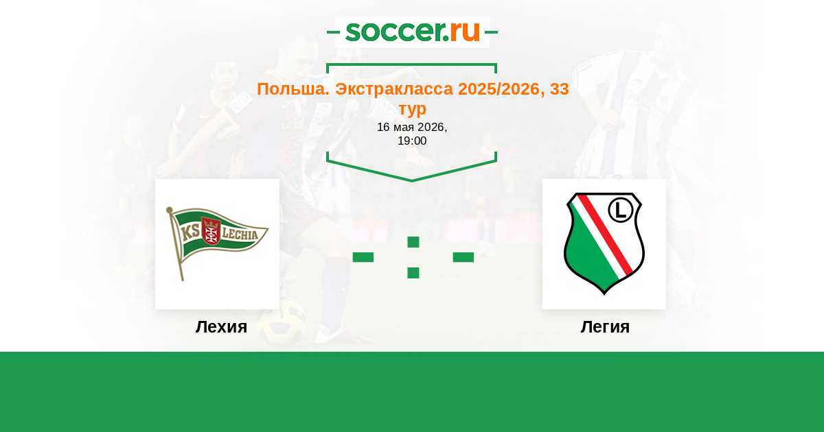 Польша. Экстракласса 21.04.2025 Легия Логотип футбольный клуб Легия (Варшава) 2:1 Логотип футбольный клуб Лехия (Гданьск) Лехия