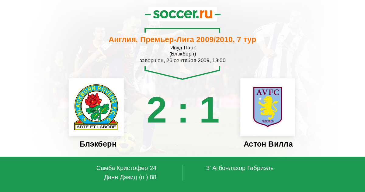 Протокол матча Блэкберн против Астон Вилла