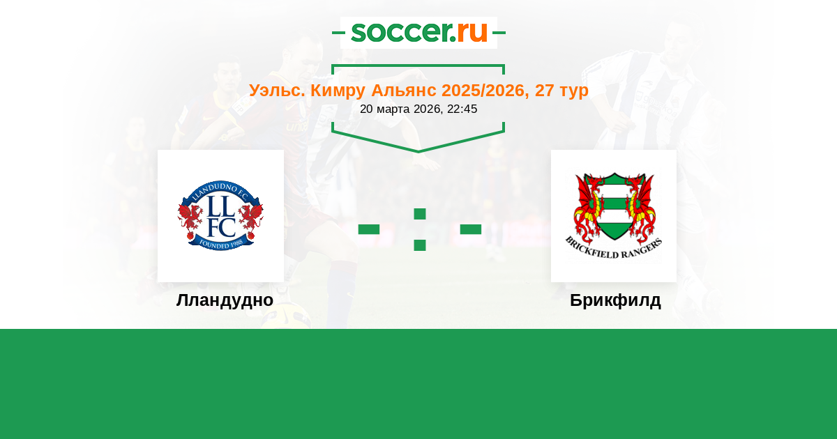 История матча Лландудно против Брикфилд