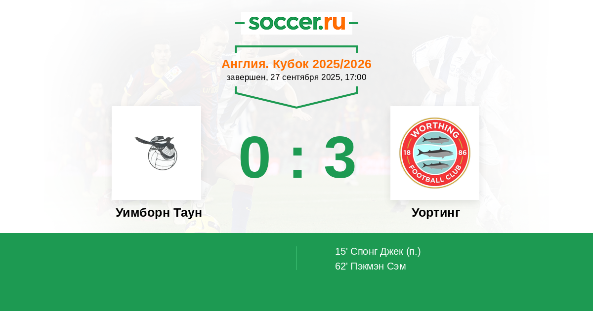 Протокол матча Уимборн Таун против Уортинг