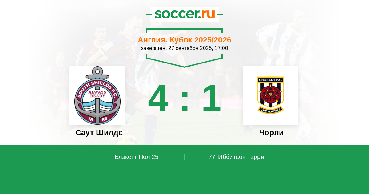 Протокол матча Саут Шилдс против Чорли