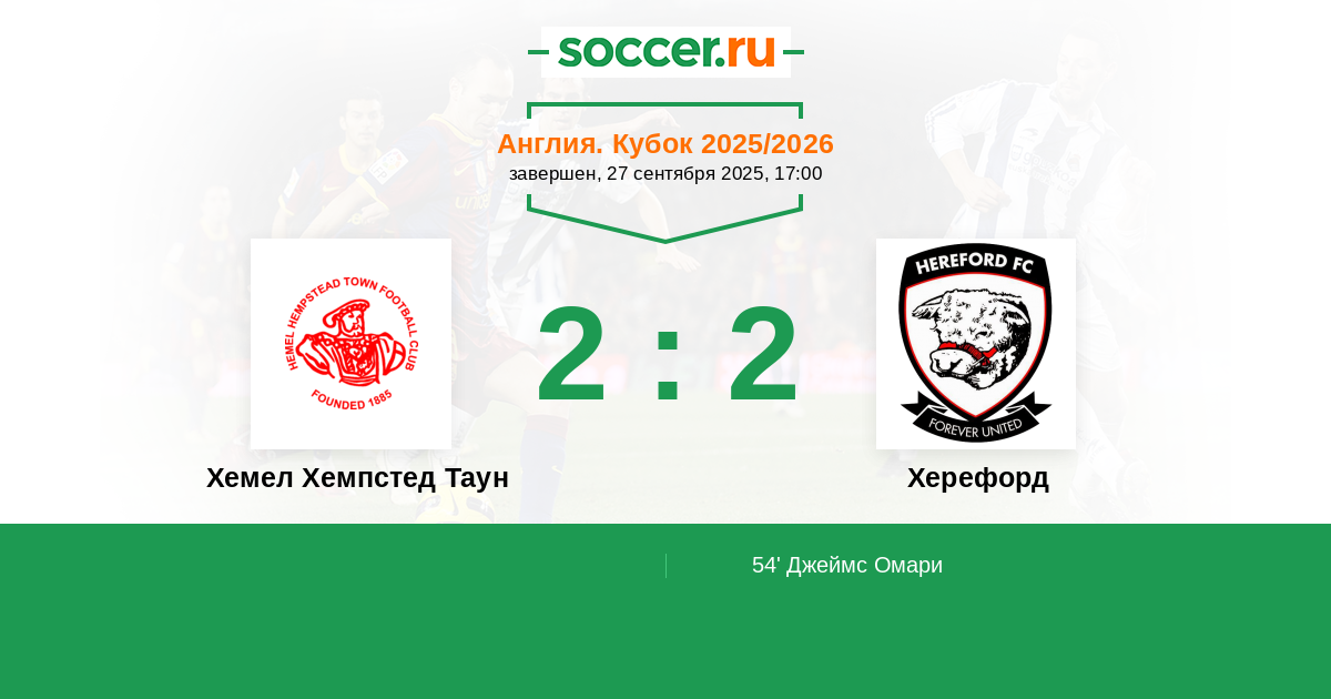 Протокол матча Хемел Хемпстед Таун против Херефорд