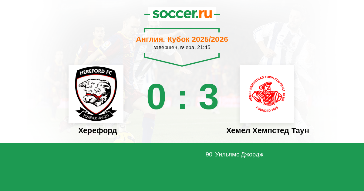 Протокол матча Херефорд против Хемел Хемпстед Таун