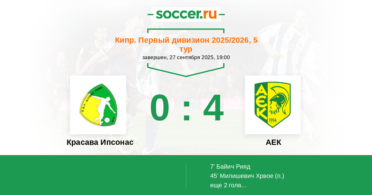 Протокол матча Красава Ипсонас против АЕК