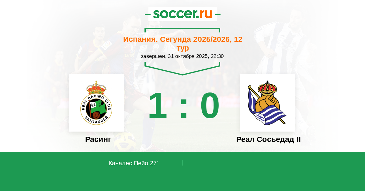 Протокол матча Расинг против Реал Сосьедад II