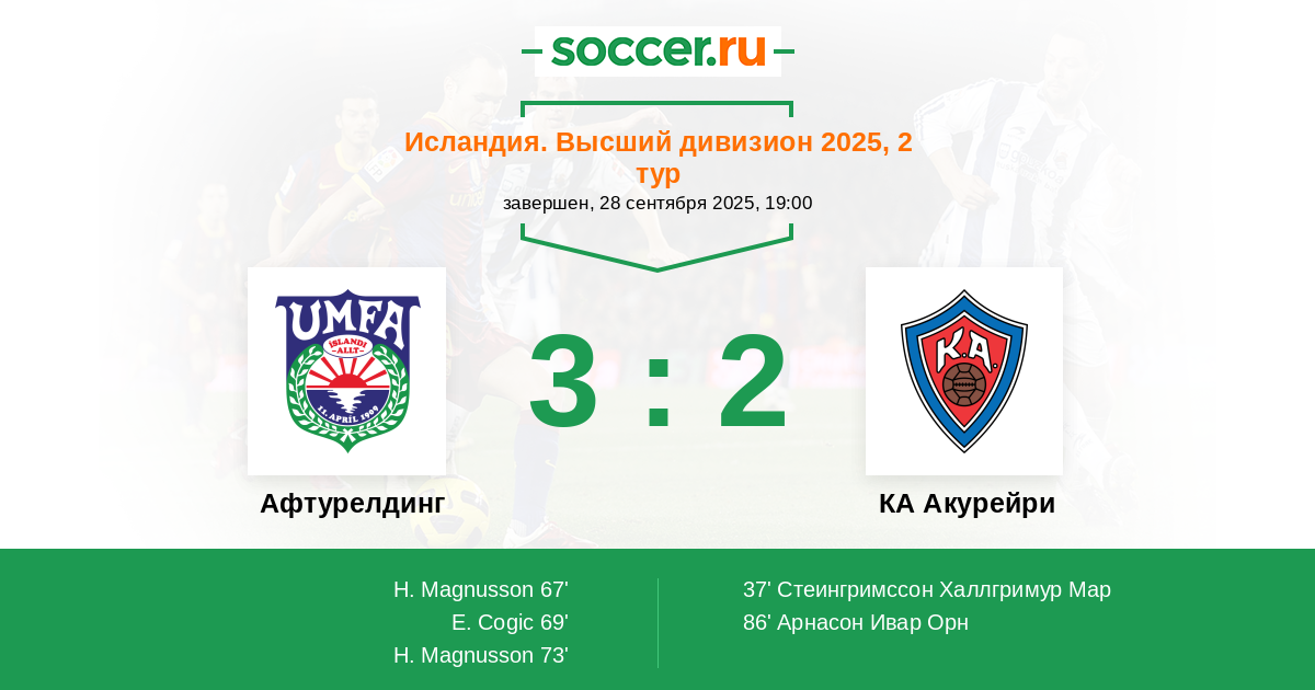 86' (3:2) Арнасон Ивар Орн (5) (Стеингримссон Халлгримур Мар (10))