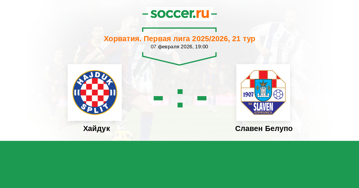 Хорватия. Первая лига 13.02.2022 Хайдук Логотип футбольный клуб Хайдук (Сплит) 3:1 Логотип футбольный клуб Славен Белупо (Копривница) Славен Белупо