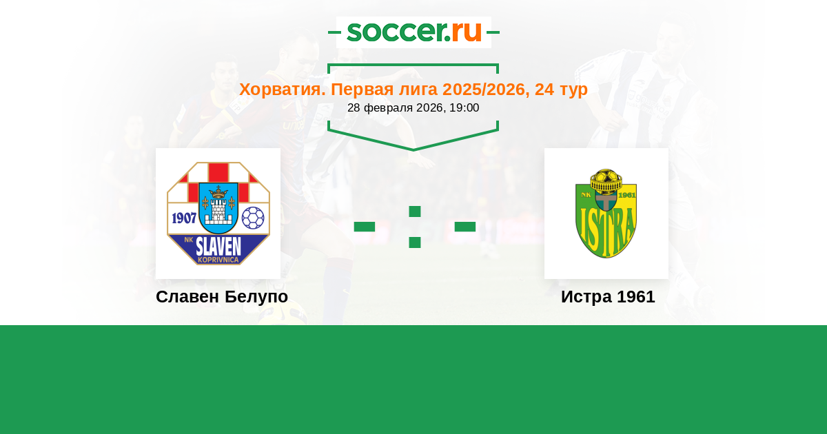 Хорватия. Первая лига 23.02.2025 Славен Белупо Логотип футбольный клуб Славен Белупо (Копривница) 0:0 Логотип футбольный клуб Истра 1961 (Пула) Истра 1961