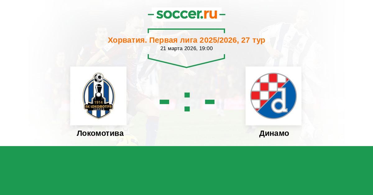 Хорватия. Первая лига 02.03.2019 Локомотива Логотип футбольный клуб Локомотива (Загреб) 1:1 Логотип футбольный клуб Динамо (Загреб) Динамо