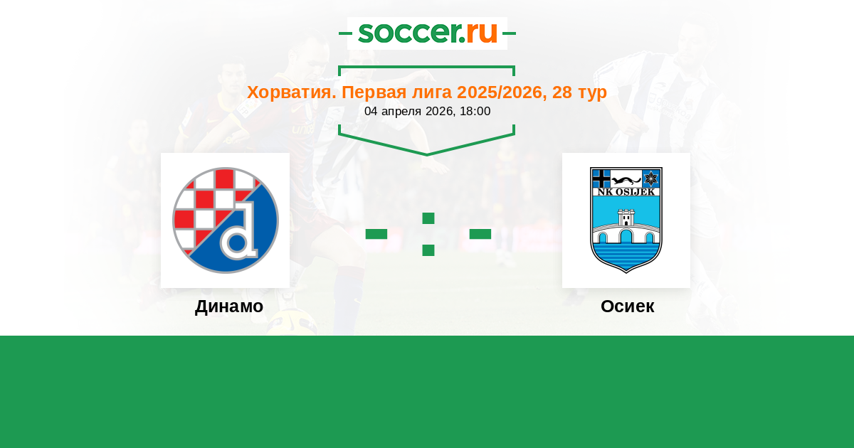 Хорватия. Первая лига 01.04.2017 Динамо Логотип футбольный клуб Динамо (Загреб) 2:1 Логотип футбольный клуб Осиек Осиек