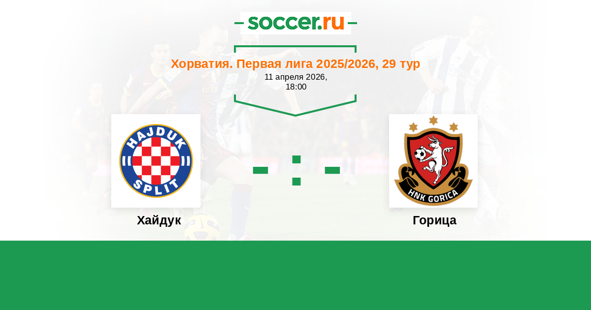 Хорватия. Первая лига 09.03.2025 Хайдук Логотип футбольный клуб Хайдук (Сплит) 2:1 Логотип футбольный клуб Горица (Велика Горица) Горица