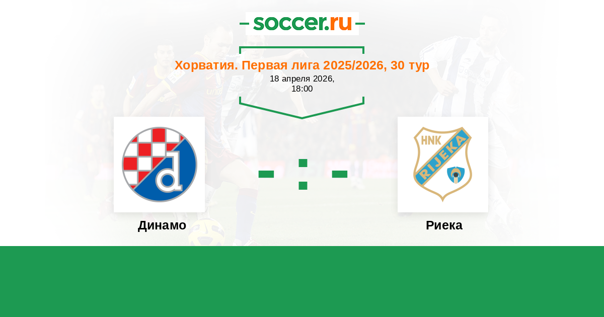 Хорватия. Первая лига 28.04.2018 Динамо Логотип футбольный клуб Динамо (Загреб) 0:1 Логотип футбольный клуб Риека Риека