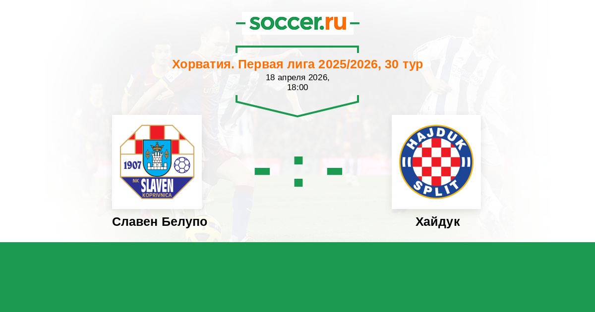 Хорватия. Первая лига 08.04.2017 Хайдук Логотип футбольный клуб Хайдук (Сплит) 1:1 Логотип футбольный клуб Славен Белупо (Копривница) Славен Белупо