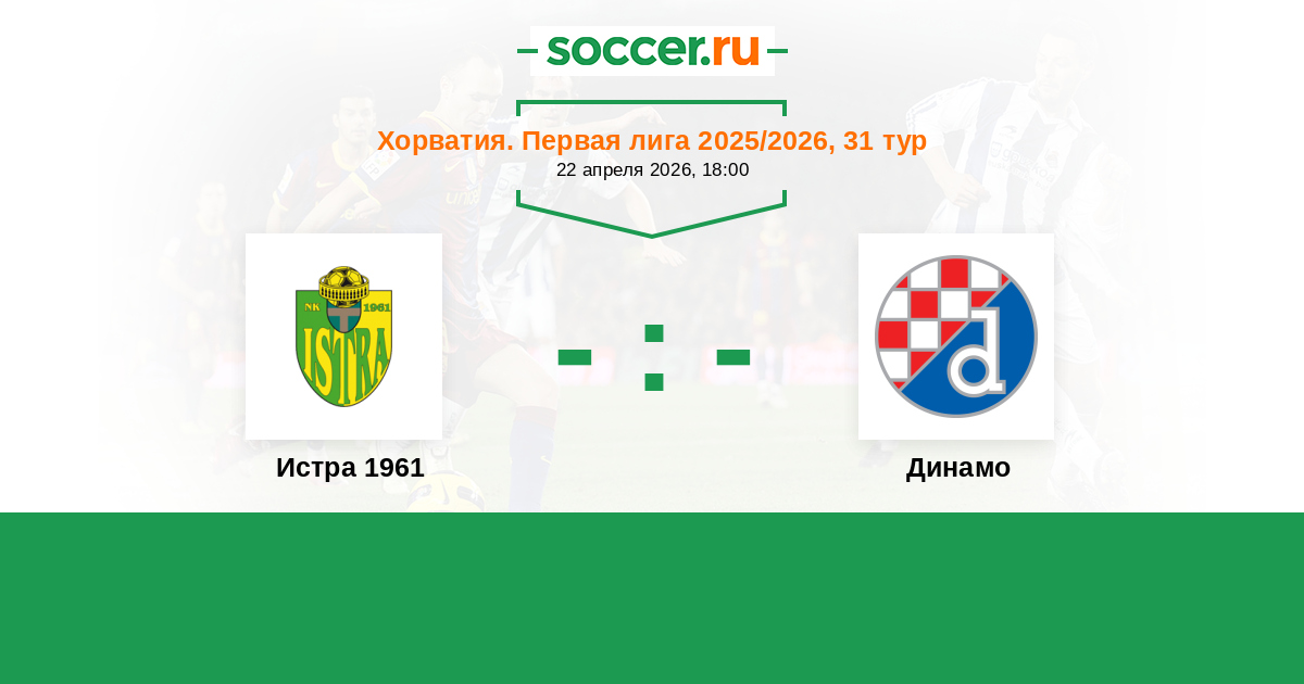 Хорватия. Первая лига 15.04.2022 Динамо Логотип футбольный клуб Динамо (Загреб) 3:0 Логотип футбольный клуб Истра 1961 (Пула) Истра 1961