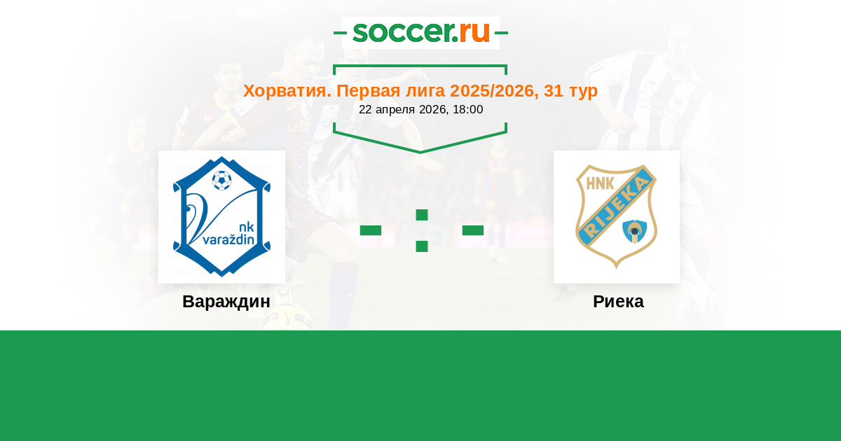Хорватия. Первая лига 12.06.2020 Вараждин Логотип футбольный клуб Вараждин 0:0 Логотип футбольный клуб Риека Риека