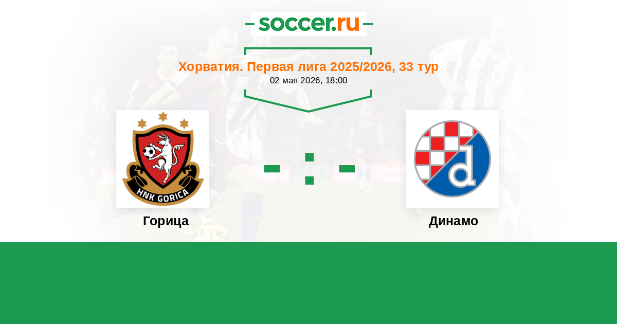 Хорватия. Первая лига 21.03.2021 Динамо Логотип футбольный клуб Динамо (Загреб) 1:0 Логотип футбольный клуб Горица (Велика Горица) Горица
