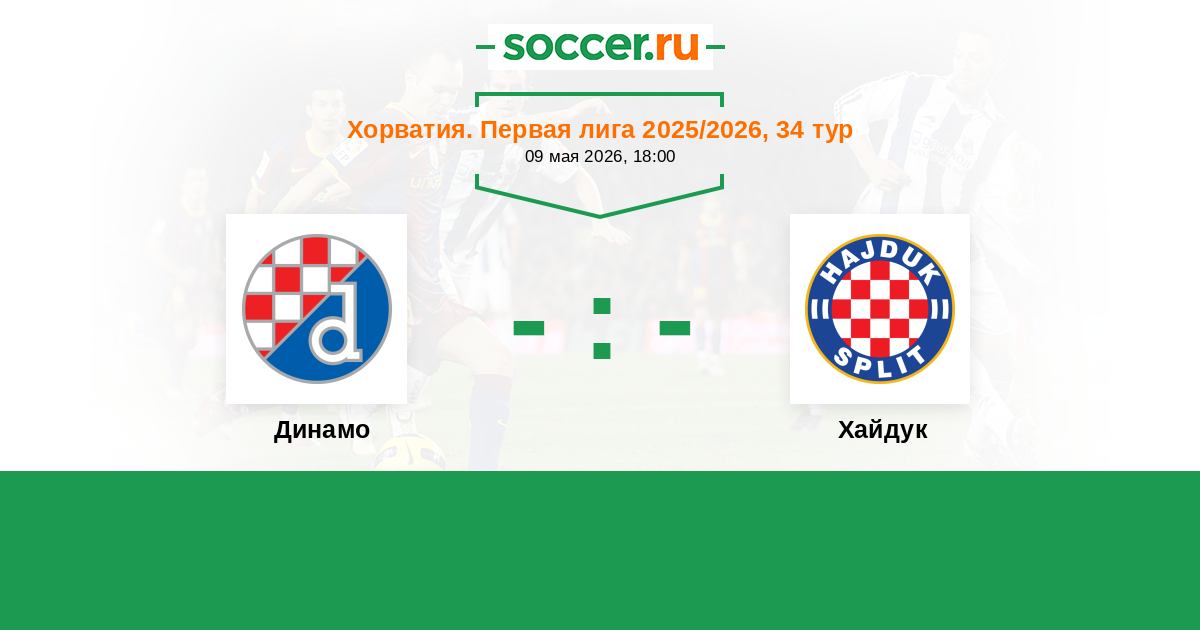 Хорватия. Первая лига 13.09.2024 Динамо Логотип футбольный клуб Динамо (Загреб) 0:1 Логотип футбольный клуб Хайдук (Сплит) Хайдук
