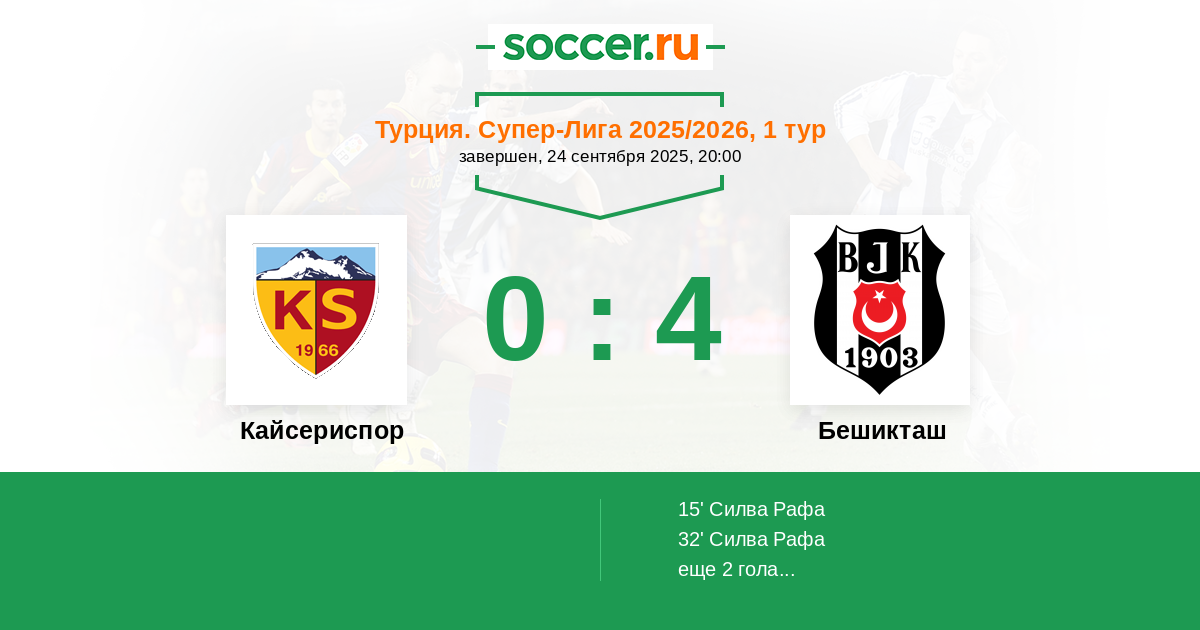 Протокол матча Кайсериспор против Бешикташ