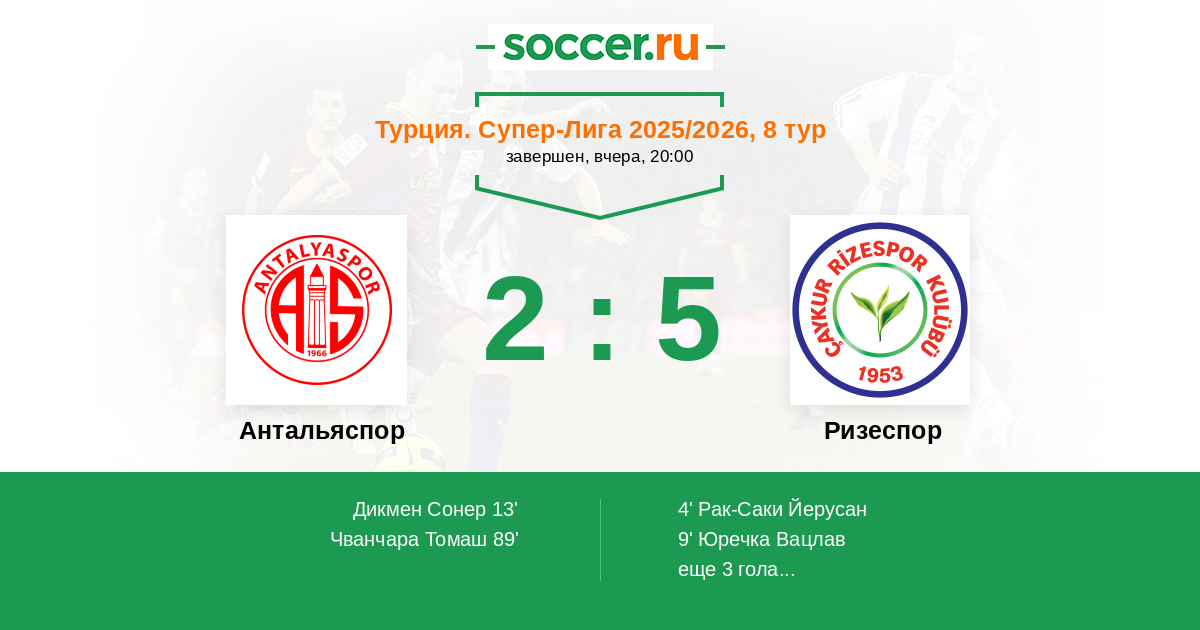 Протокол матча Антальяспор против Ризеспор