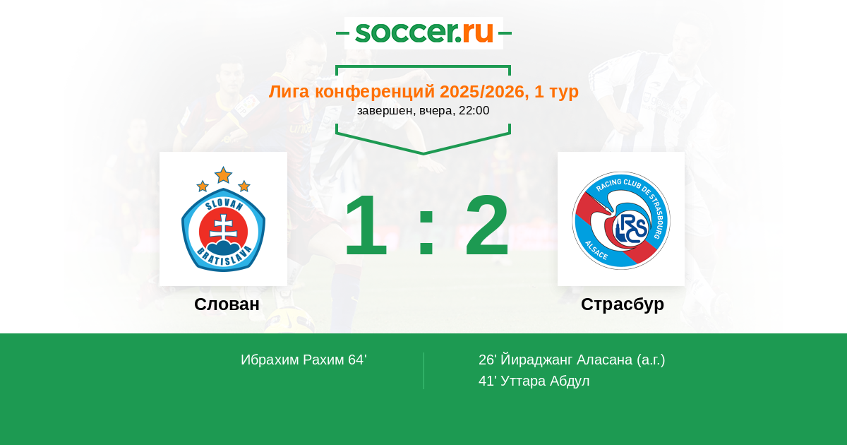 Протокол матча Слован против Страсбур