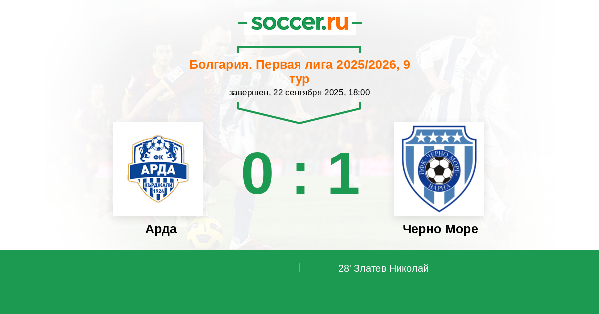 Протокол матча Арда против Черно Море