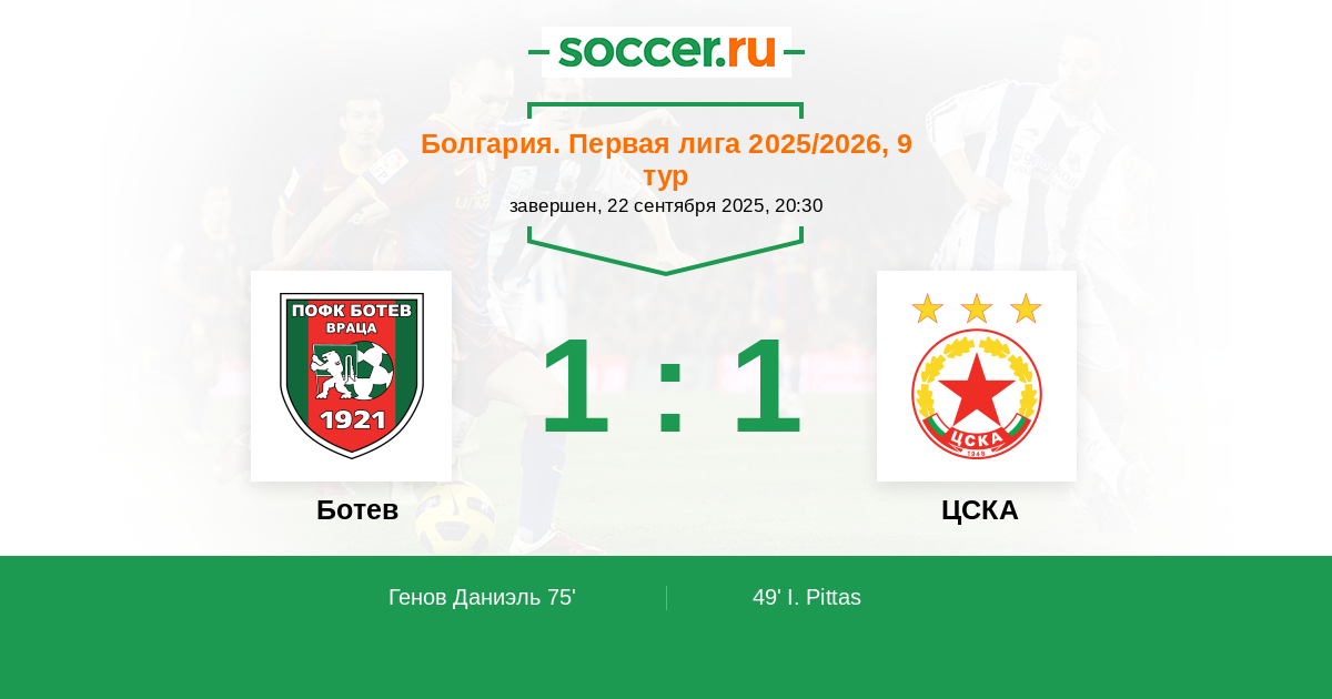 Протокол матча Ботев против ЦСКА