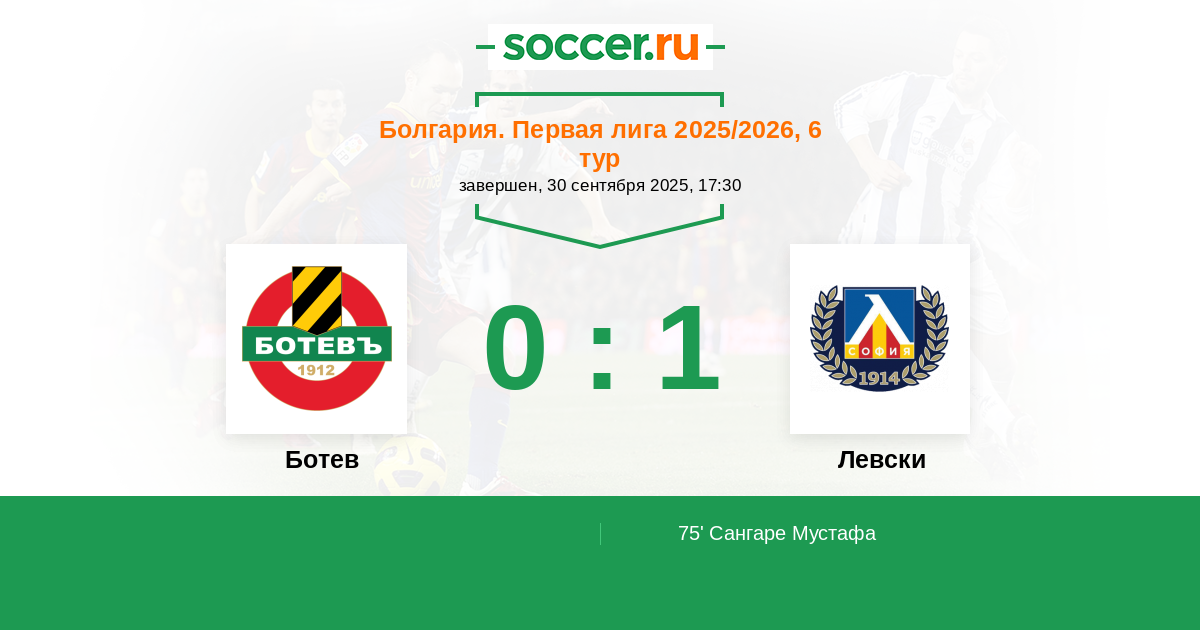 Протокол матча Ботев против Левски