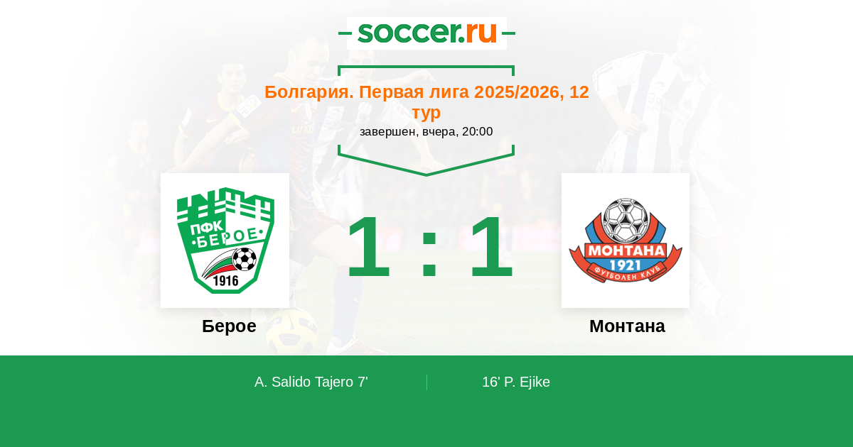Протокол матча Берое против Монтана