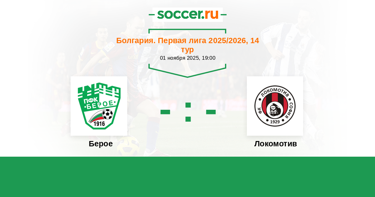 Болгария. Первая лига 05.11.2021 Локомотив Логотип футбольный клуб Локомотив (София) 0:3 Логотип футбольный клуб Берое (Стара-Загора) Берое