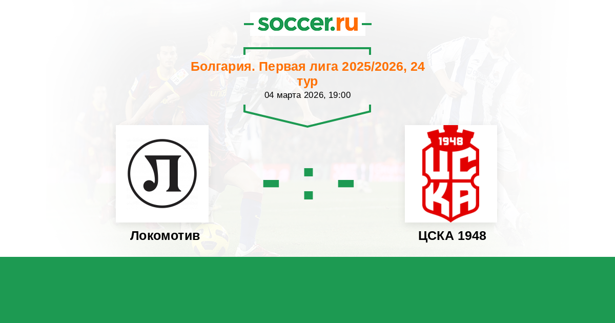 Болгария. Первая лига 21.04.2024 Локомотив Логотип футбольный клуб Локомотив (Пловдив) 1:1 Логотип футбольный клуб ЦСКА 1948 (София) ЦСКА 1948