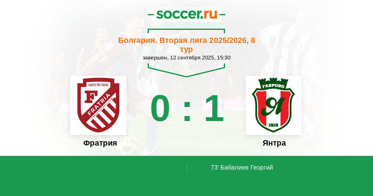 Протокол матча Фратрия против Янтра
