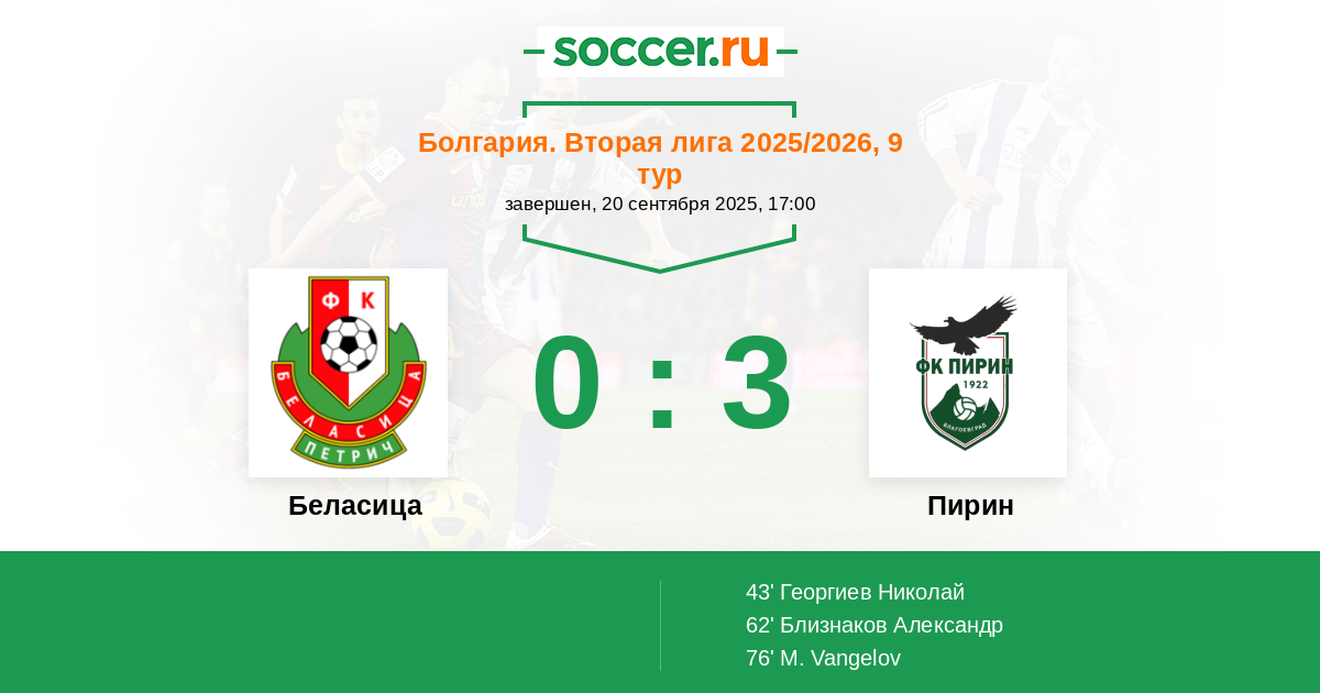 Протокол матча Беласица против Пирин