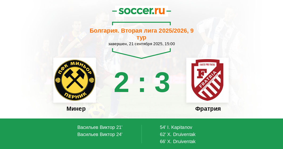 Протокол матча Минер против Фратрия