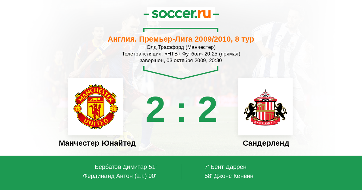 Протокол матча Манчестер Юнайтед против Сандерленд