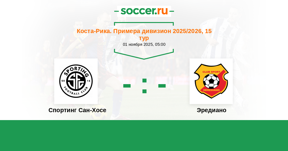 Протокол матча Спортинг Сан-Хосе против Эредиано