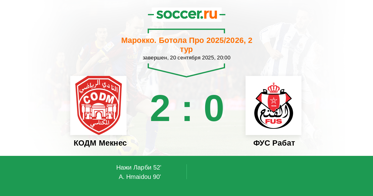 Протокол матча КОДМ Мекнес против ФУС Рабат