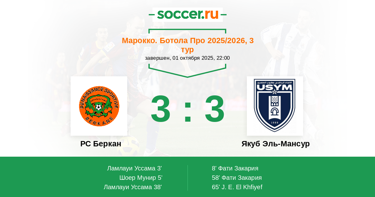 Протокол матча РС Беркан против Якуб Эль-Мансур