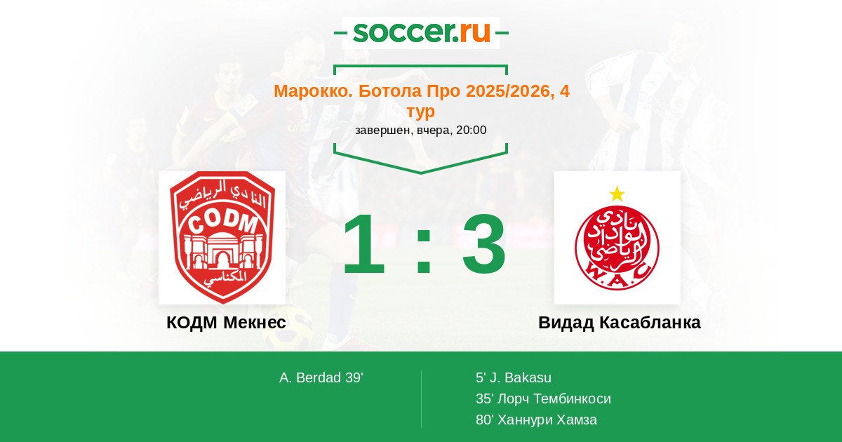 Протокол матча КОДМ Мекнес против Видад Касабланка