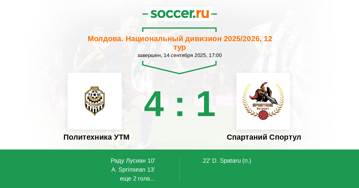 Протокол матча Политехника УТМ против Спартаний Спортул